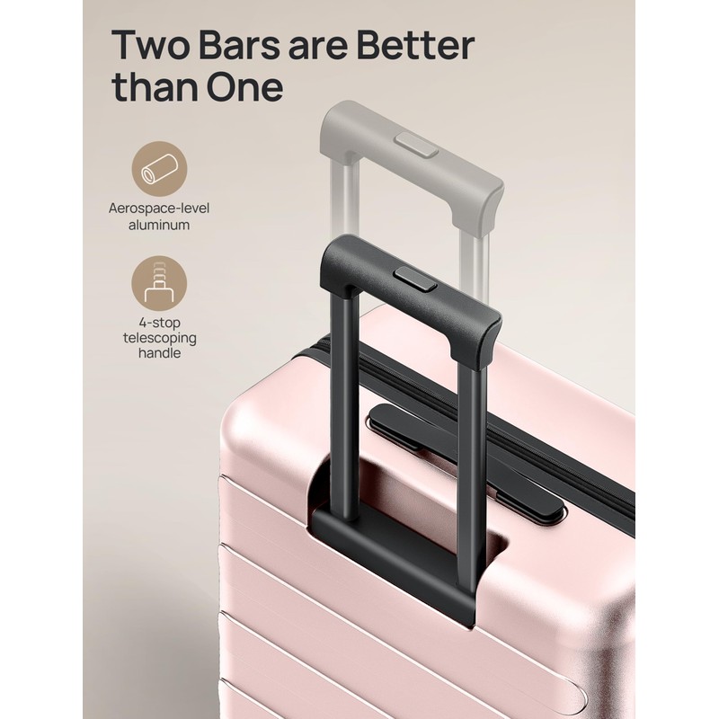- 【Durable Hard Shell】Crafted from Germany Bayer PC material, this hard-shell PC luggage is scratch-resistant, odorless, and built to last. The sturdy aluminum telescopic handle adds extra strength and comfort for effortless handling.