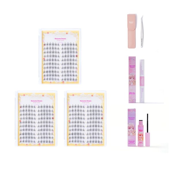 Ninetynine Dreams 120PCs Sunflower Lashes – Individual Spiky Lashes, 8-13mm, C+ Curl, Thin Transparent Band (3 Packs + Accessories (Bond & Seal))