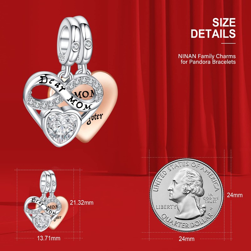 NINGAN 925 Sterling Silver Pendant Charm Gift for Mum Mother's Day Necklace Bracelet Compatible for Women, Cubic Zirconia, Cubic Zirconia