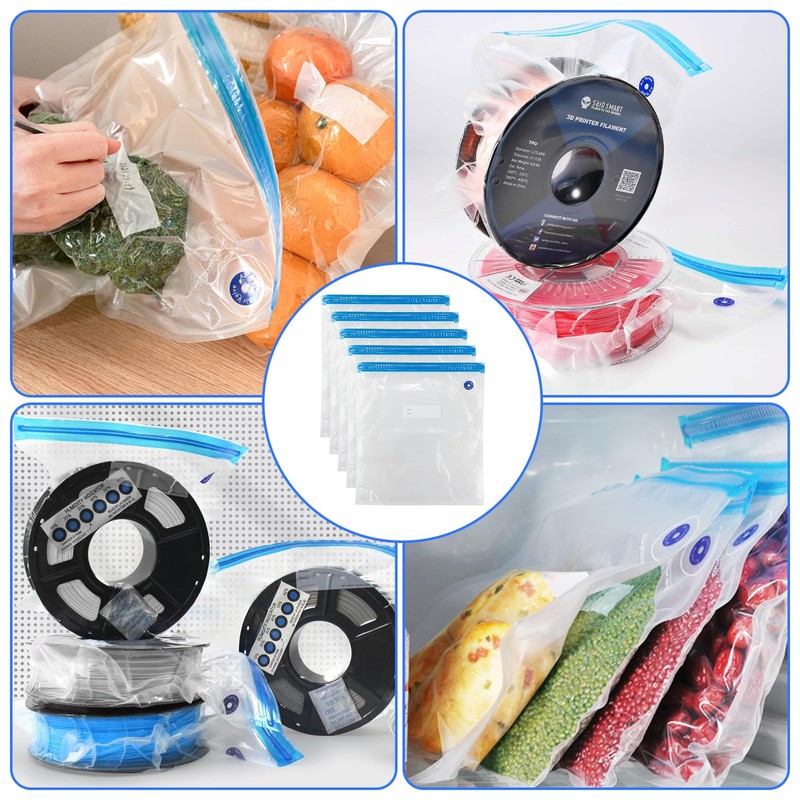 - High-quality material: filament bag is made of food-safe material PA + PE, thickened design, thicker than normal style. Robust and durable for many types of vacuum 3D filament bags, prevents breakage and air leakage, reusable.