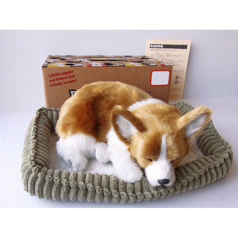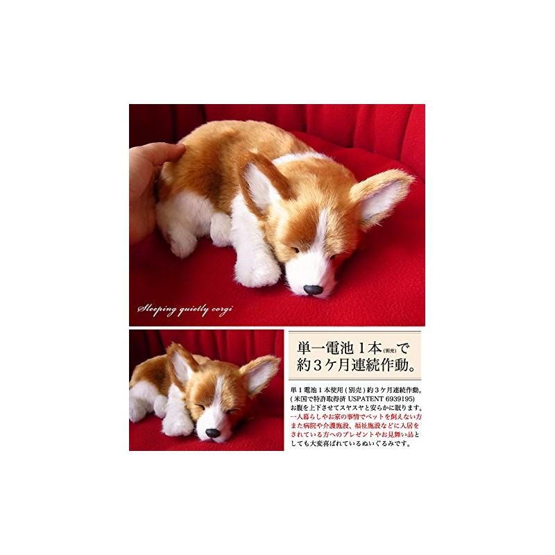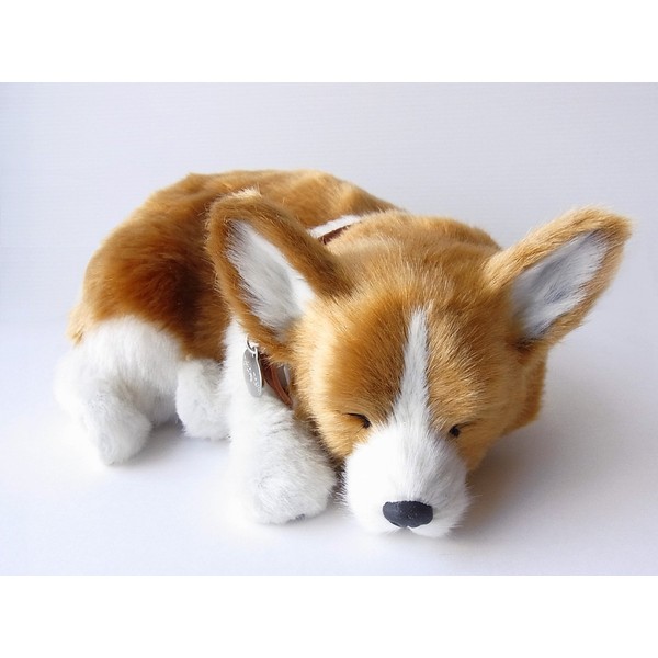 Ninia and Kino Perfect Pet Corgi, Size S, Approx. 8.7 inches (22 cm), Plush Toy, Dog, Life-Like, Stomach Moves Like Dog Is Sleeping Peacefully