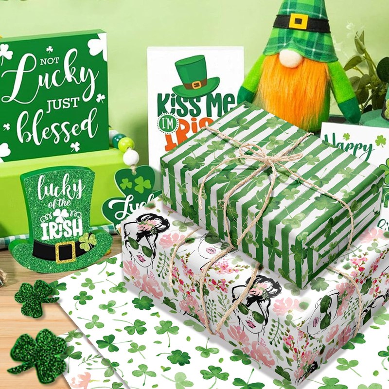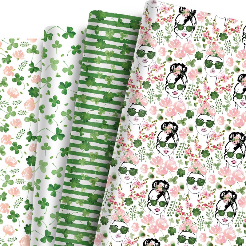 - ☘️👧🏻☘️【Package Includes】 - Package includes totally 12 sheets watercolor shamrock girl wrapping paper in 4 different designs, each design has 3 sheets, sufficient to meet your needs for patriotic gifts wrapping, and you can share with your friends at back to St. Patrick's Day party, would add more fun to your DIY crafts.
