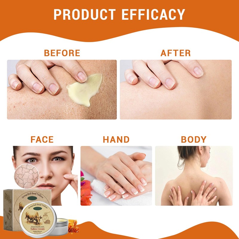 - Lasting Hydration: Our beef tallow skincare cream has a deep penetration ability, ensuring your skin remains soft and smooth, effectively fighting against dryness for long lasting moisturization in any environment