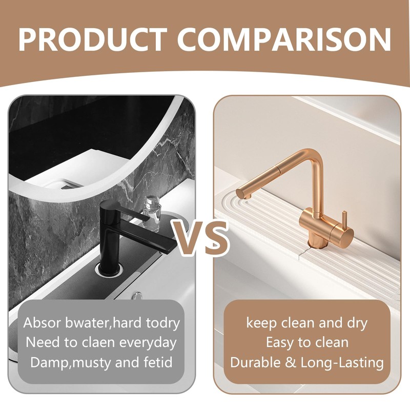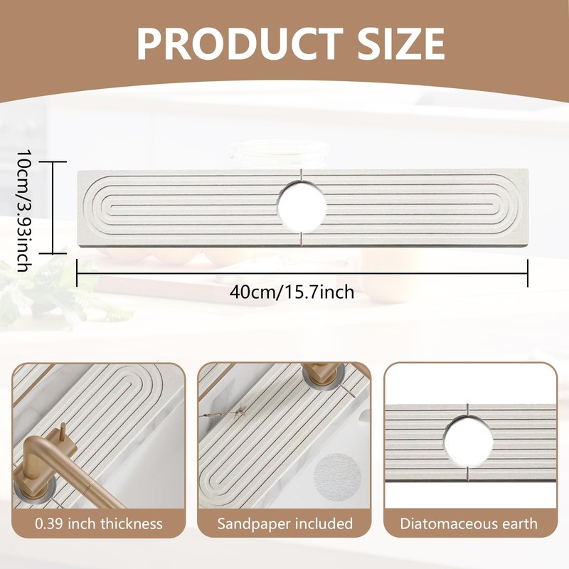 - High Absorbency: Made from diatomite, this stone faucet mat quickly absorbs water, preventing moisture buildup and keeping your kitchen or bathroom counter dry