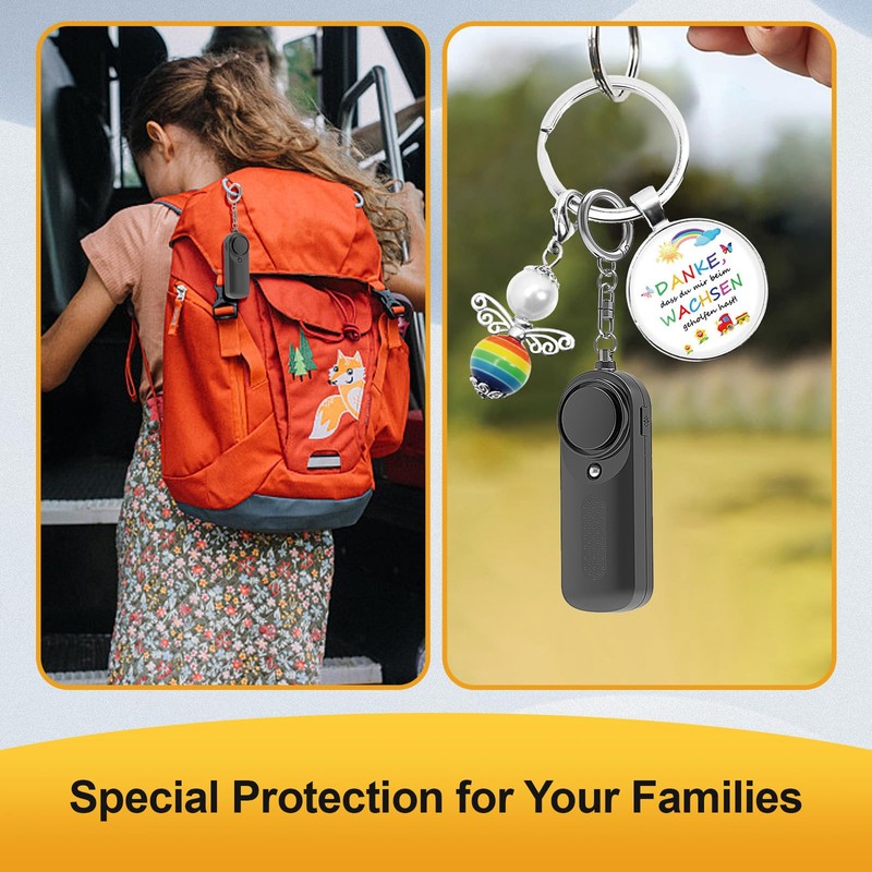 - Convenient to carry: the self-defence alarm is very small and has an exquisite key chain that can be disguised as a decoration to hang it on your handbag, backpack, luggage and keys. This is a very practical alarm.