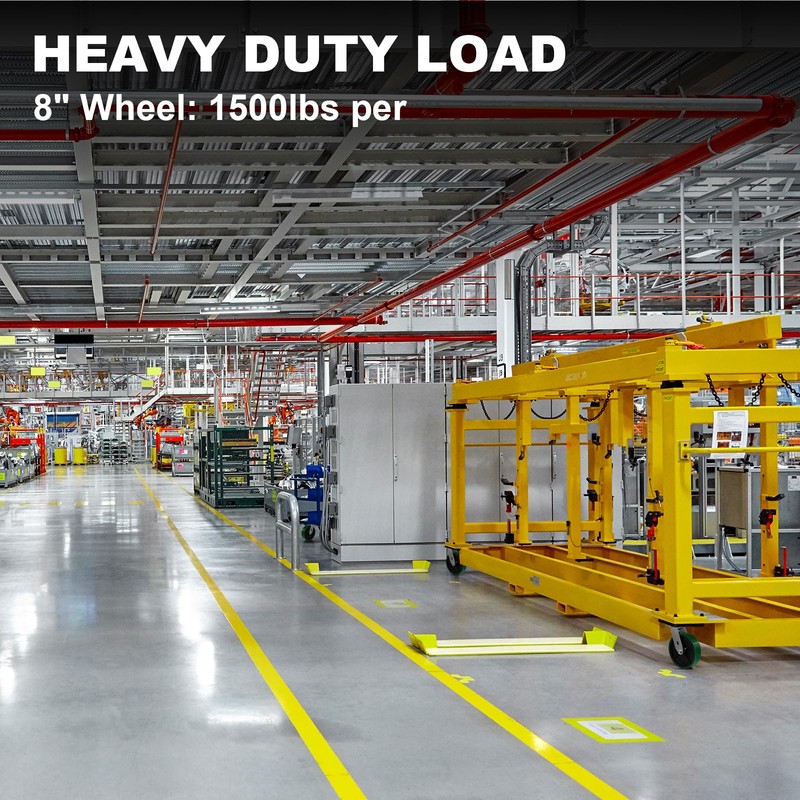 - Load Capacity: 4": 800lbs per wheel; 5": 1000lbs per wheel; 6": 1200lbs per wheel; 8": 1500lbs per wheel. Shock absorbing cushioned slide offers floor protection.