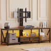 NinPeen 63" W TV Stand with Mount for 50,55,65,75" TV,Entertainment Center with Power Outlet and Led Lights,Height Adjustable TV Console Table with Shelves and Fabric Drawers (Rustic Brown)