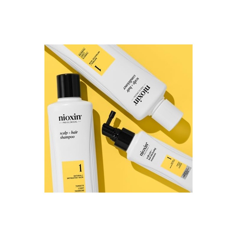 NIOXIN - Nioxin Kit #1 de Crecimiento de Cabello, para Cabello Natural con Caída Moderada (3 Piezas: Shampoo 300ml + Acondicionador 300ml + Tratamiento 100ml)