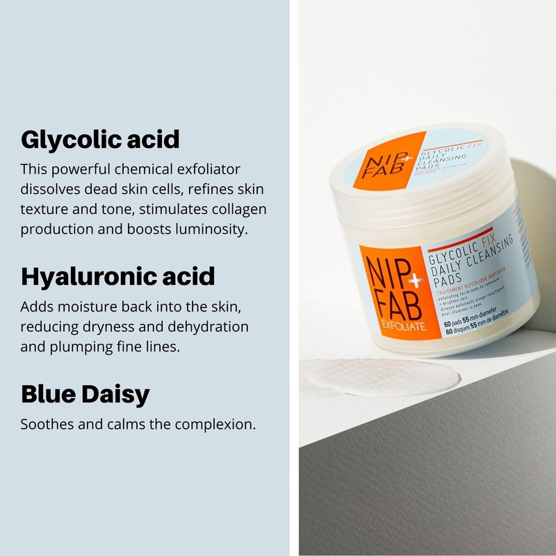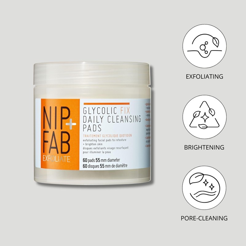 • GENTLY EXFOLIATES THE SKIN - Nip + Fab Glycolic Fix Daily Cleansing Face Pads work to gently exfoliate and retexture skin, Use these exfoliating glycolic acid cleanser pads for face to reveal brighter and smoother skin