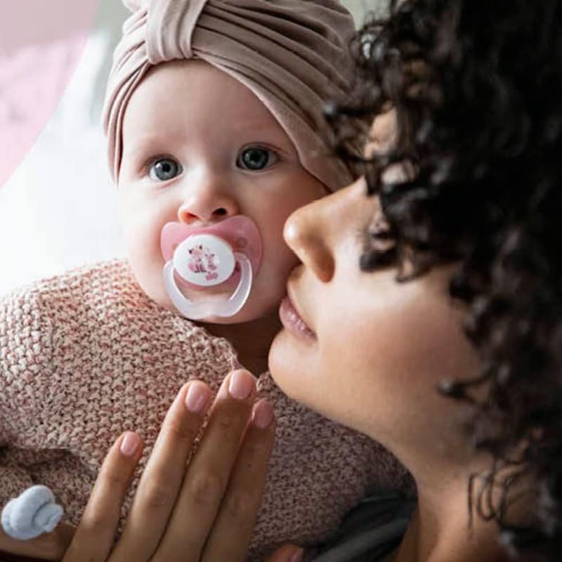 - With grip ring for a secure hold and an optimal attachment to baby's dummy strap