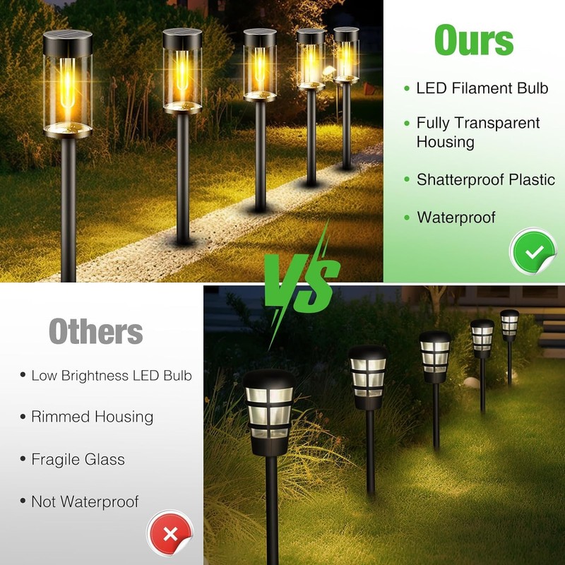 - Auto Charging & Auto Lighting: 25% conversion rate, charge faster during the day. From dusk to dawn, solar garden pathway lights automatically light up for 8-10 hours. Auto on/off, no need for manual operation required, more convenient
