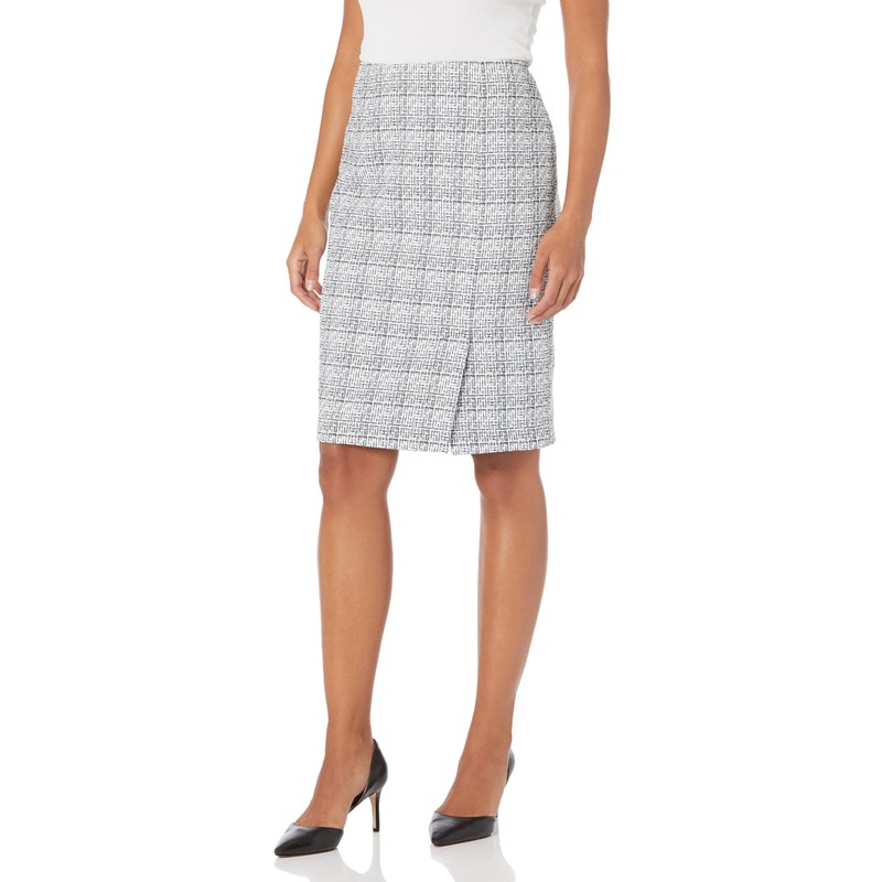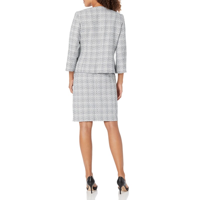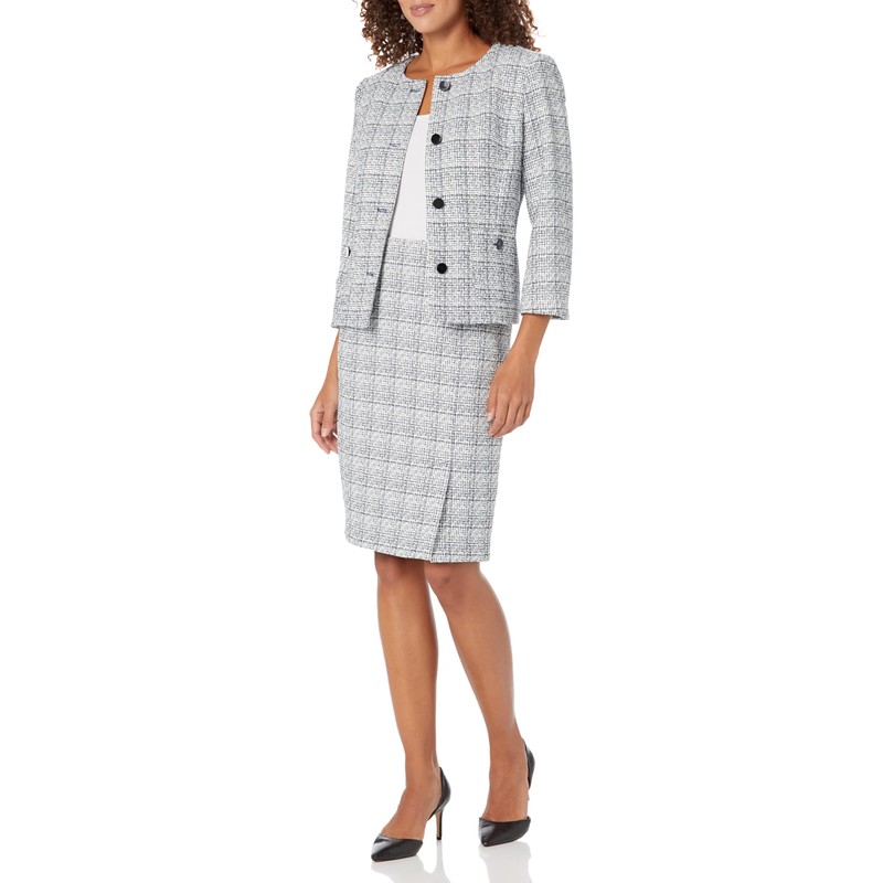 NIPON BOUTIQUE Women's Tweed 4 Button Jacket with Front Slit Skirt, Blue/White Combo