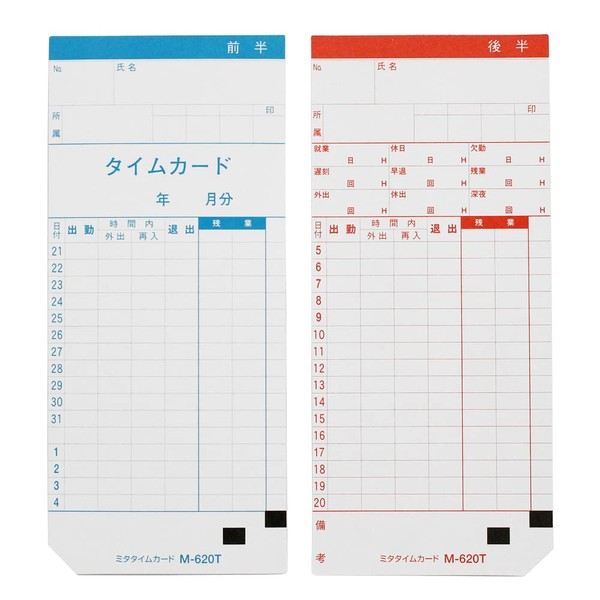nippo- For Time Card 620T Compatible Generic (20 Days Tightening) 100 Pieces ...