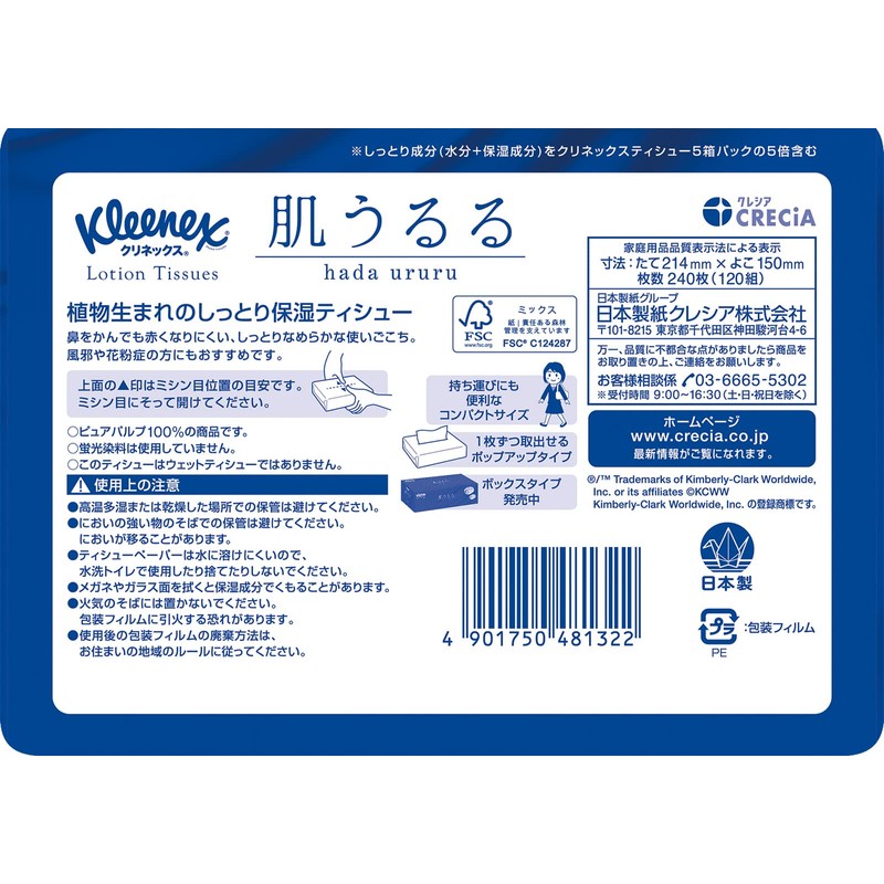 • Japanese Paper Crecia Kleenex Skin Soothing Soft Pack, 110 Pairs x 5