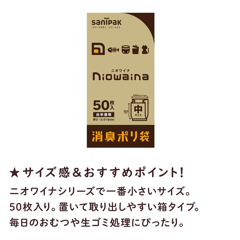 Nippon SaniPak Niowaina SY03 Deodorizing Plastic Garbage Bags, Trash Bags, Mid-Size, 13.8 x 9.8 inches (35 x 25 cm), Translucent, White, Pack of 50