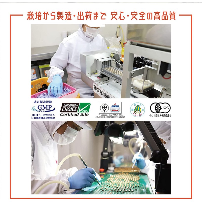 本商品は厳格な衛生・品質基準をクリアした「有機JAS認定」「GMP認定」「インフォームドチョイス認証」工場で製造。