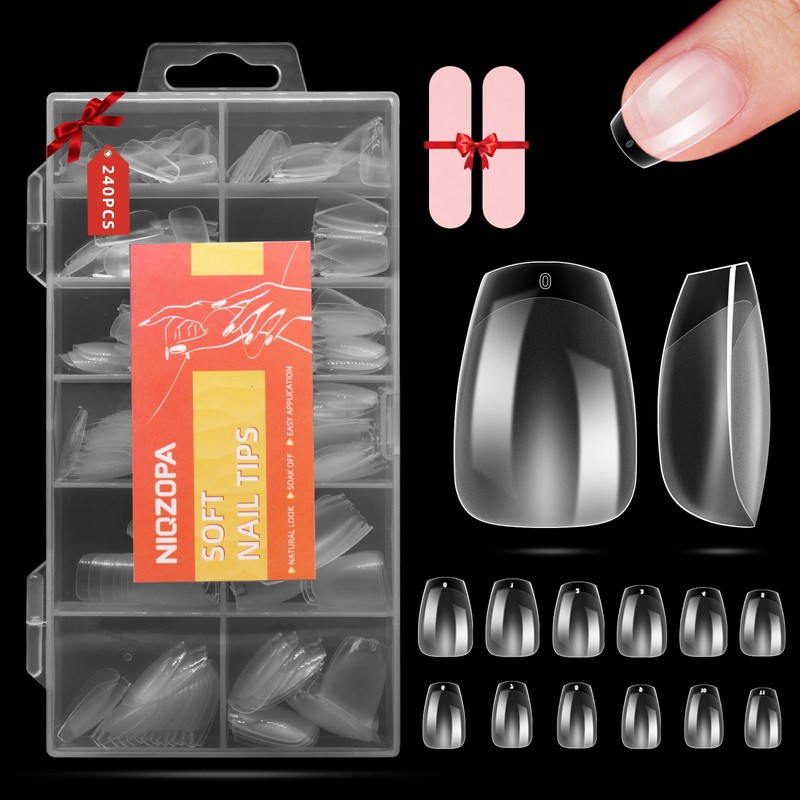 - Soft Gel Half Matte Coffin Nail Tips: The NIQZOPA gel nail tips are made of quality soft gel material, combining exceptional toughness and flexibility, resisting breaks and bouncing back to shape instantly when bent, making them perfect for a comfortable fit on any nail bed. It can be used with nail polish, dip powder, or acrylics.Whether you're a beginner or a professional, these tips are designed to save you time and money, offering a salon-quality manicure experience at home