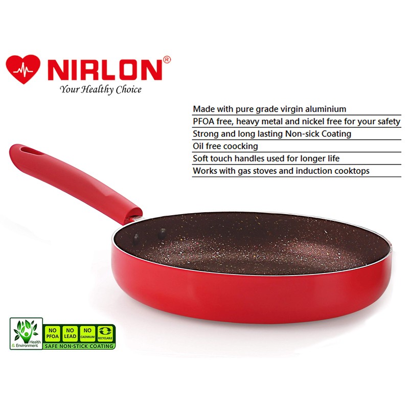 Nirlon Red Stone Induction and Gas Compatible Non Stick Aluminium 2 Piece Cookware Set [1 Flat Roti Tawa 26cm|1 Fry Pan 24cm - 1.5 Liter]