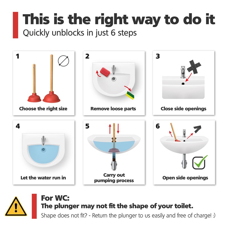 - –– CHEMICAL-FREE –– The plunger is a chemical-free and gentle tool for removing blockages in hard-to-reach places - gentle on the drain pipe and the environment.