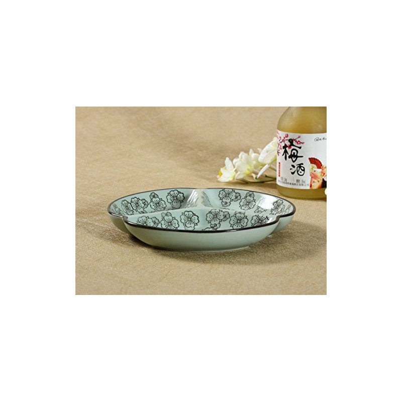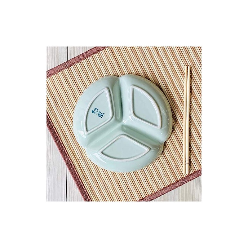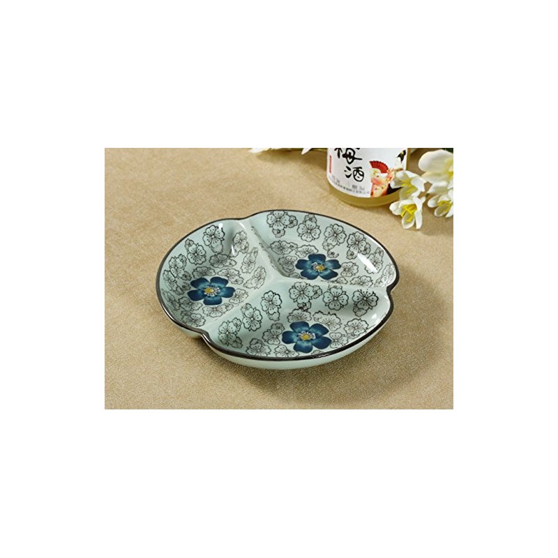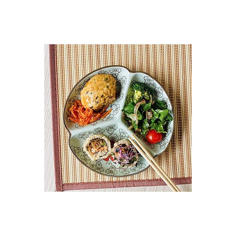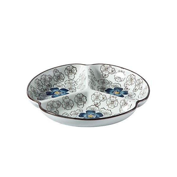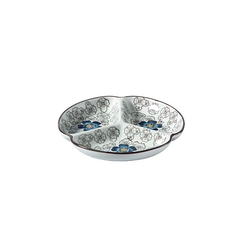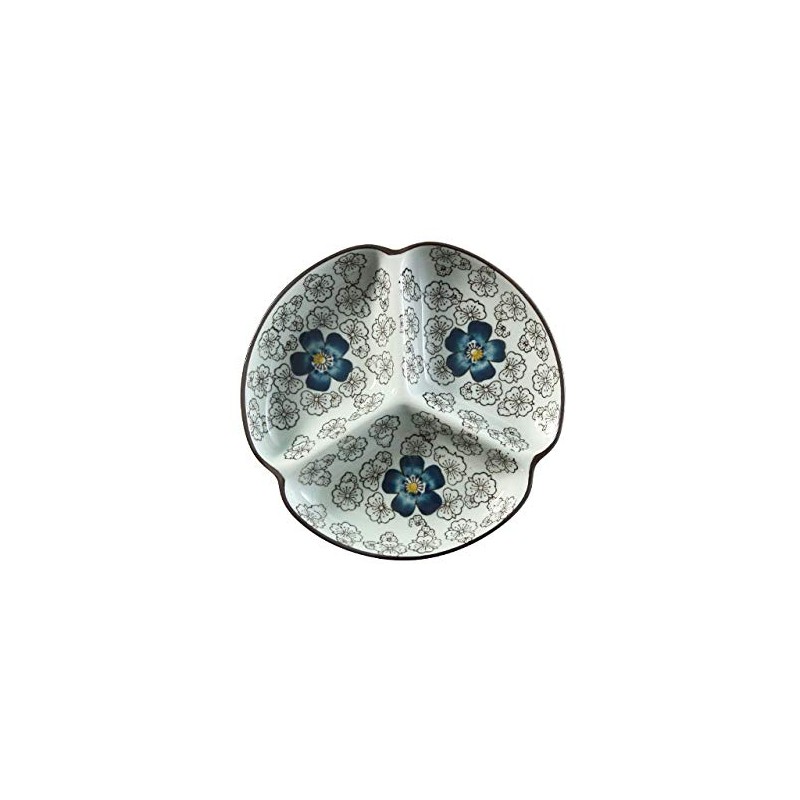 Nishida 120044 No. 7.5 3-Compartment Plate (Blue Camellia), Home Restaurant, Commercial Tableware, Medium Plate, Platter, Round Plate, Japanese Tableware, Divider Plate