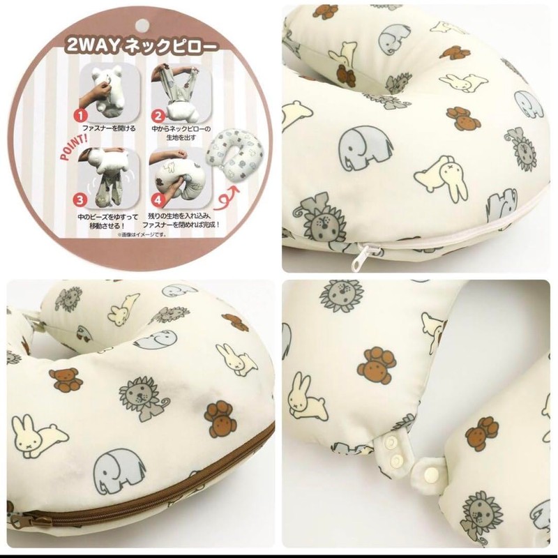 Nishikawa Living Neck Pillow, Polyester Plush/12.2 x 6.7 inches (31 x 17 cm), Neck Pillow/14.6 x 14.2 inches (37 x 36 cm), Miffy, 2-Way Neck Pillow, White