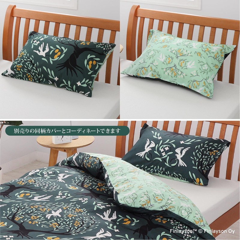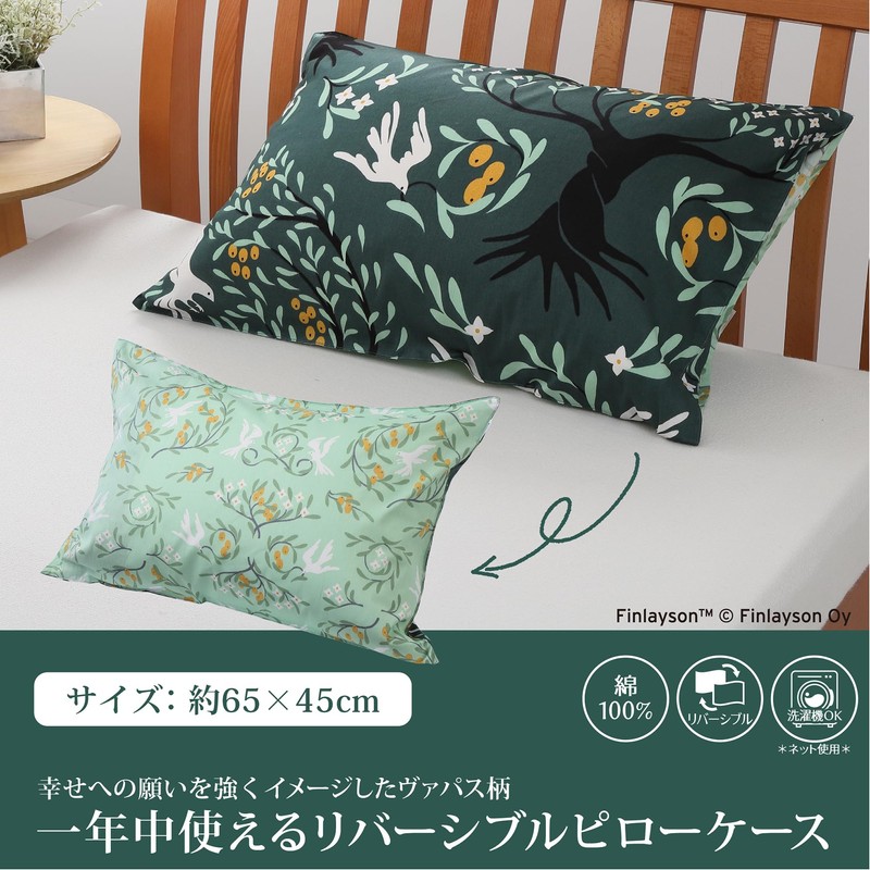 Nishikawa PJ03180675 Pillow Cover, Compatible with 24.8 x 16.9 inches (63 x 43 cm), Washable, 100% Cotton, Finlayson Vapour, Reversible, Green