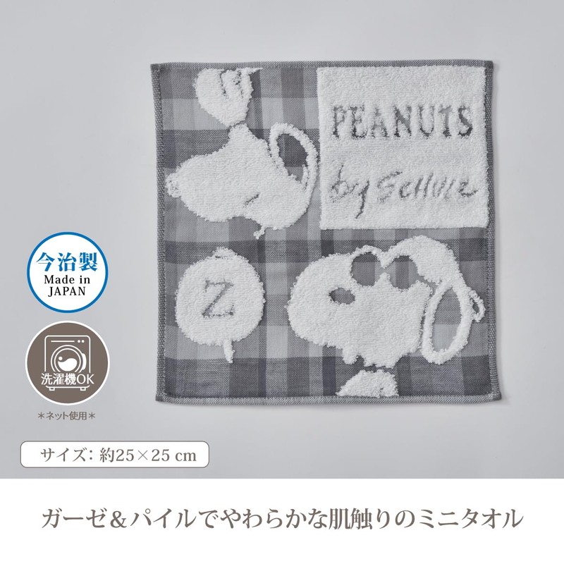 Nishikawa PN4606TW Snoopy Mini Towel, 9.8 x 9.8 inches (25 x 25 cm), Washable, 100% Cotton, Gauze & Pile Fabric, Checked Design, Made in Japan, Made in Imabari, Gray XT44706600
