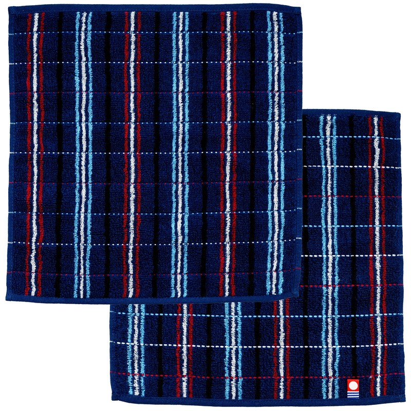 Nishio IBT-506-01-2P Imabari Towel Certified Hand Towel, Men's, Set of 2, Made in Japan, 100% Cotton, 9.8 inches (25 cm), Double-Sided Pile, Water Absorbent, Checkered Pattern, Men's Imabari Towel