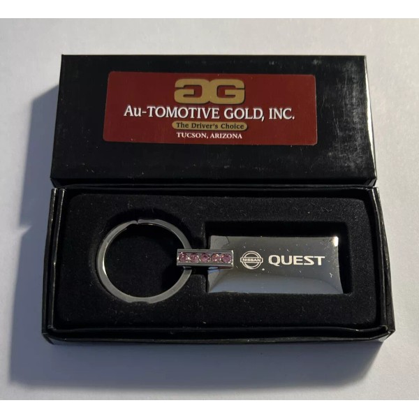 NISSAN QUEST Pink Jeweled Rectangular Silver Key Ring NEW IN BOX
