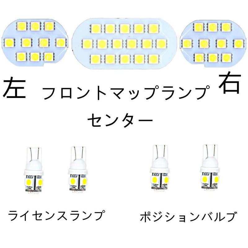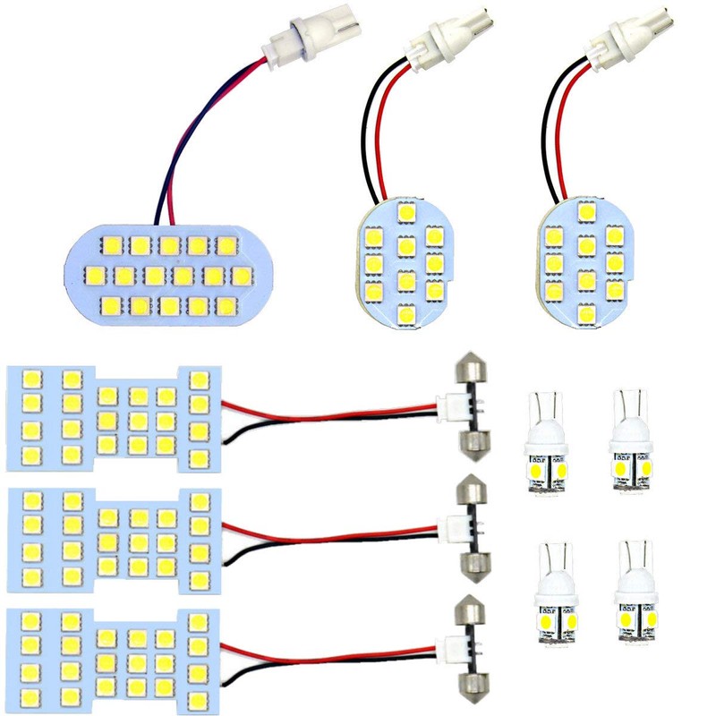 • Set Includes: Front: 3-gang map lamp, SMD-LED, 16 LEDs, total 16 LEDs (center) SMD-LED, 10 LEDs x 2 sets Total 20 LEDs (left and right). Center: Top of second sheet, left and right (1 each SMD-LED 21 LED x 2 sets), Total 42 LEDs, Luggage: SMD-LED 21 LED bulbs. : Front SMD-LED 5 LED x 2 sets Total 10 LEDs; License Lamp: Rear SMD-LED 5 LEDs x 2 sets, Total 10 LEDs, Total 119 LEDs (x3 chip=357), Installation Tool x 1, Product Instruction Manual x 1