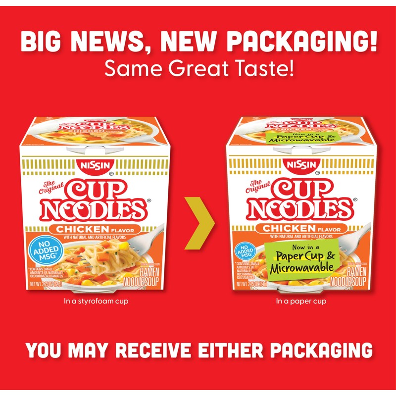 Nissin Cup Noodles Ramen Noodle Soup, Chicken, Microwaveable Paper Cup, 2.25 Ounce (Pack of 12)