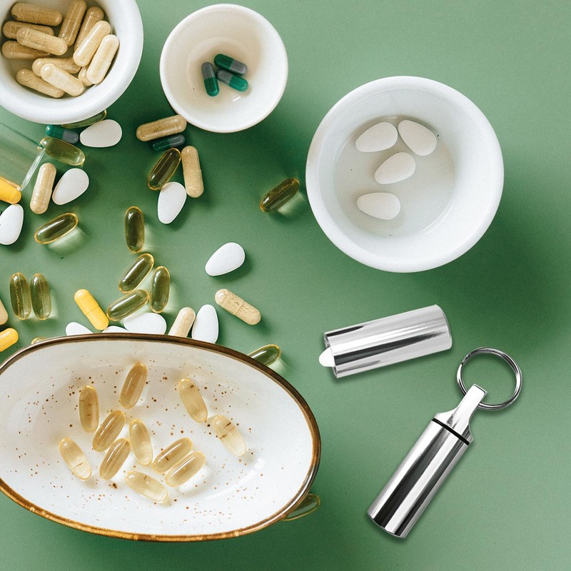 - Wide Applications The small aluminum pill pendant is nice for small nitroglycerin, pills, medicines, capsules and some small first aid items or small survival essentials you need to keep dry, also can be a nice decoration.