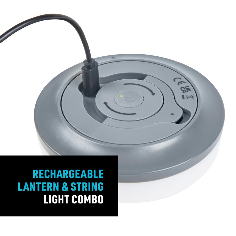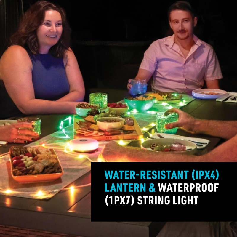- Water-Resistant & Rechargeable: This rechargeable water-resistant (IPX4) lantern and waterproof (IPX7) string light recharges in approximately 2.5 hours with USB-C cable (included)