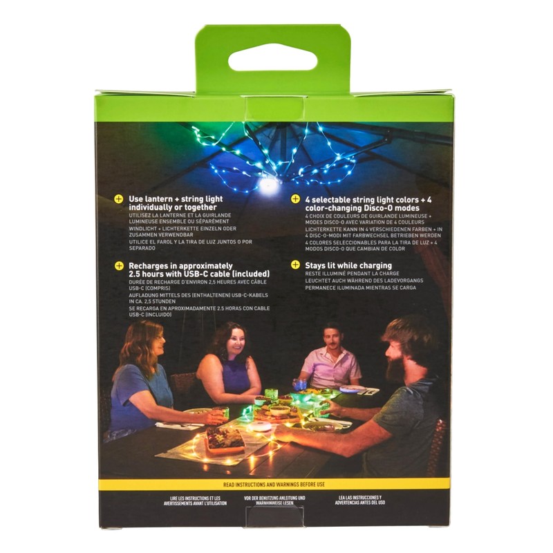 - Selectable String Light Colors: This 200-lumen lantern contains 23ft (7m) string light features approximately 70 patented LEDs illuminating a solid amber, red, green, or blue thanks to Disc-O Select Technology