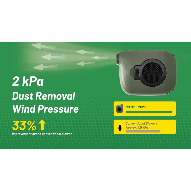 Once charged, the BB Mini can power the fan for over 30 minutes of continuous use. The tri-color battery level indicator will let you know when to recharge; plug in the USB-C cable for fast charging to full in 1.5 hours. The large power button controls two fan speeds while flipping the lock switch prevents accidental activation during the transportation and storage. Film with confidence when you have the BB Mini in your back pocket for on-the-go equipment cleaning.