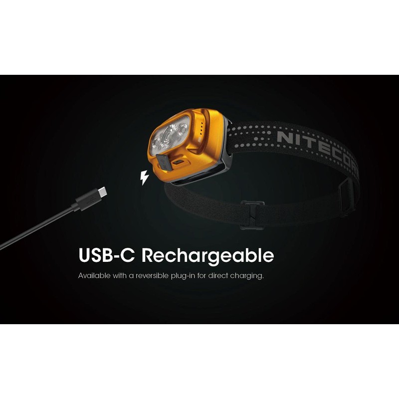 NITECORE NU31 Triple Output Lightweight USB-C Rechargeable Headlamp- 550 Lumens -Orange w/Eco-Sensa USB Charging Cable