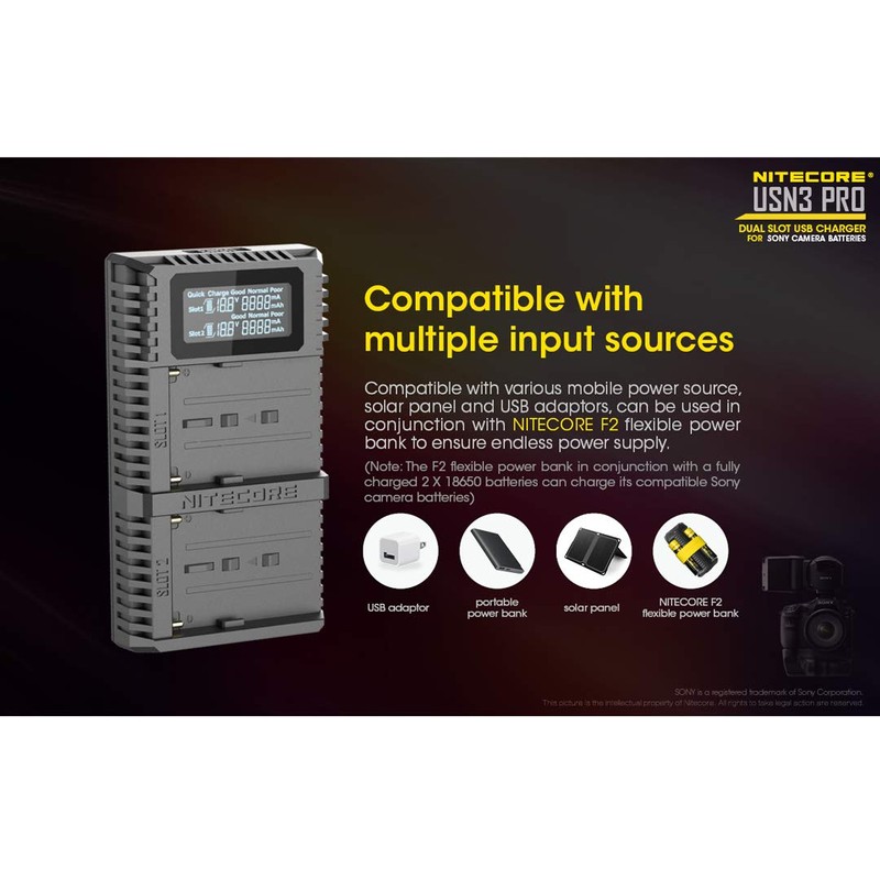 Nitecore USN3 Pro Dubbel Lader voor Sony NP F Serie Schwarz