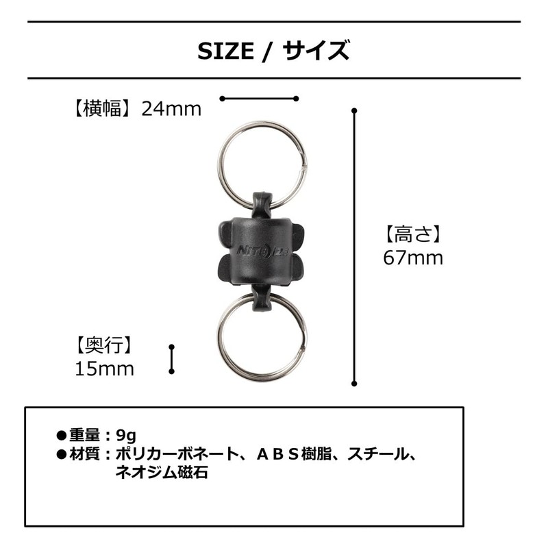NITEIZE Key Ring 360° Magnetic Quick Connector Black W24 x H67 x D15 mm, Black