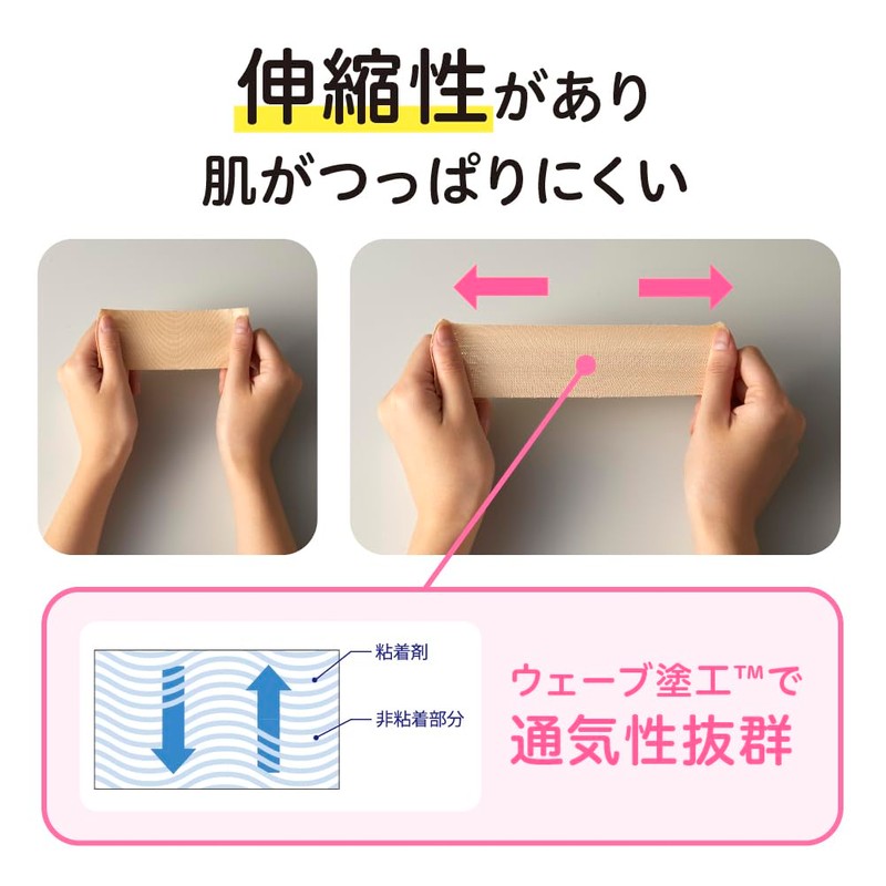 Nitoms Caremate N1480 Skin Bandage, Stretchable, Gentle on the Skin, Firmly Attached Bandage, Skin Color, 2.0 inches (50 mm) x 6.6 ft (2 m)
