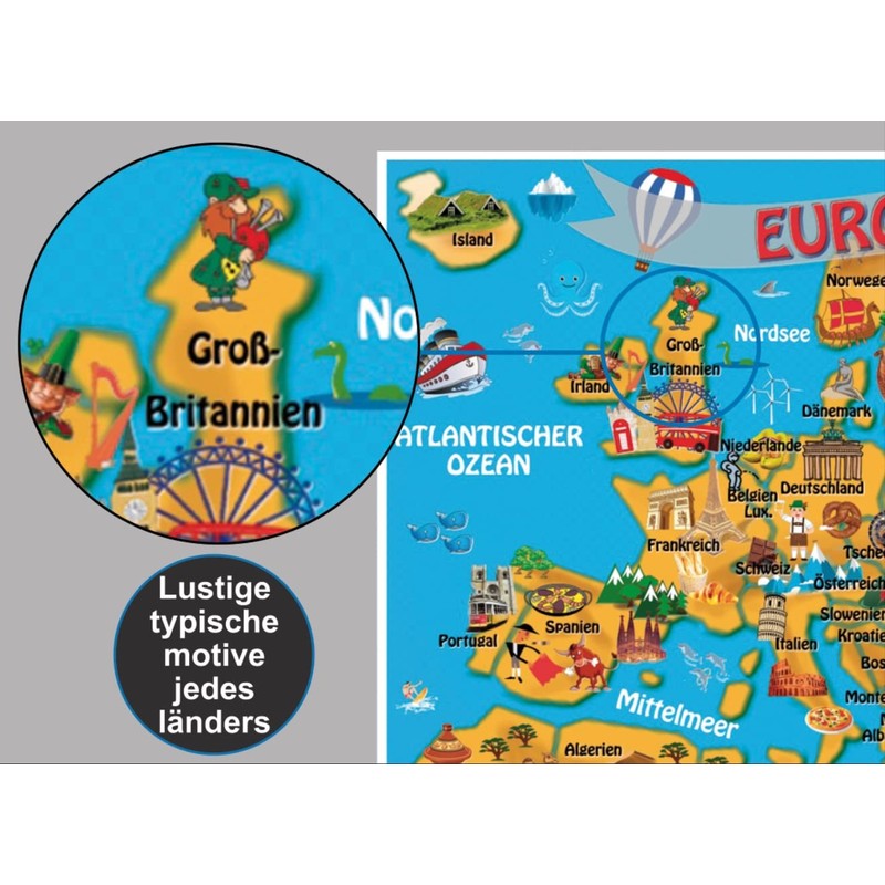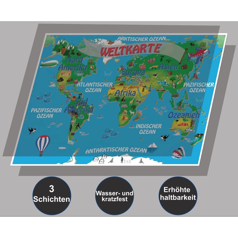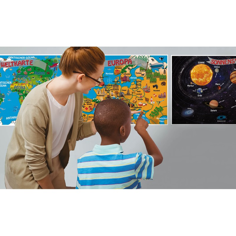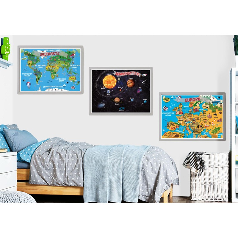 NITRAM World Map Poster for Children Europe and Solar System Prints to Decorate Children's Rooms A3