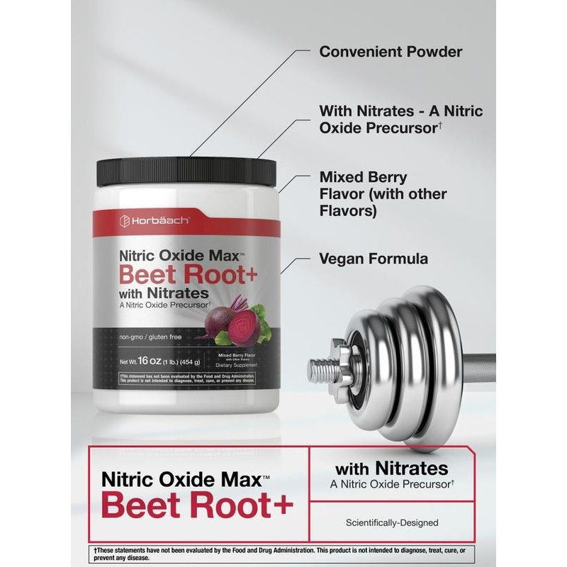 Horbaach Nitric Oxide Max Beet Root Powder delivers a nutrient-packed formula designed to fuel your daily performance. Beet root (Beta vulgaris), a nutrient-dense red superfood, is naturally rich in nitrates, vitamins, and minerals that support nitric oxide production and overall wellness.