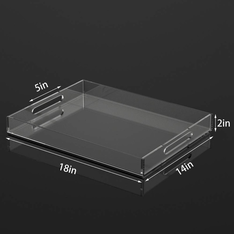 - Invisible Decorative Tray- The clear look of the tray take up little visual space,makes it easy to corral remote & magazines on coffee table,display toiletries on the dresser,keep things organized and easily retrieved.