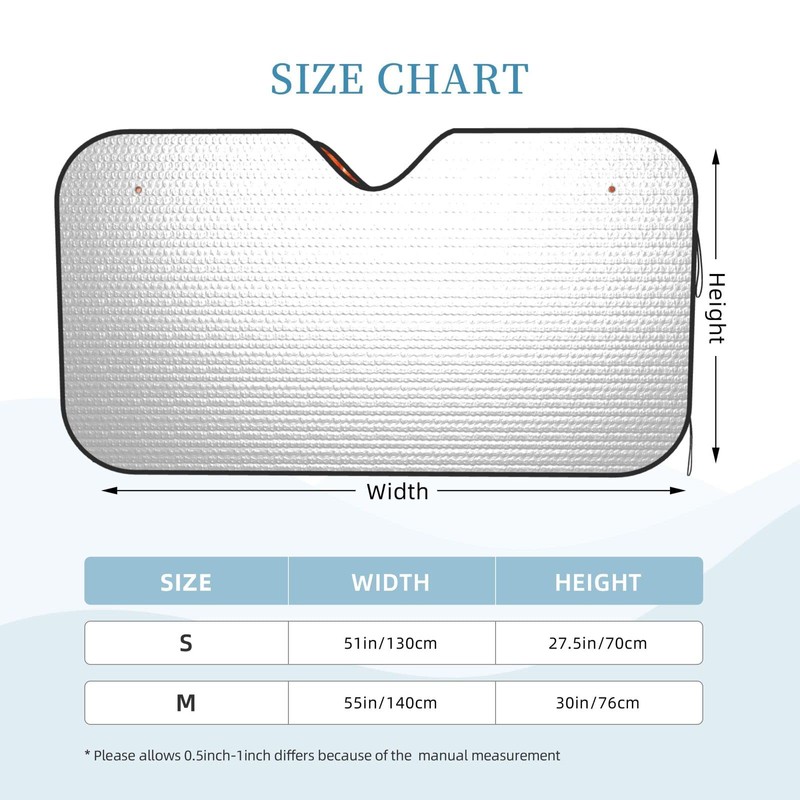 - SIZE : Our car sunshades come in two sizes: S (51.2 X 27.5inch), M (55 X 30inch), please check the size of your car's windshield to purchase the right size.
