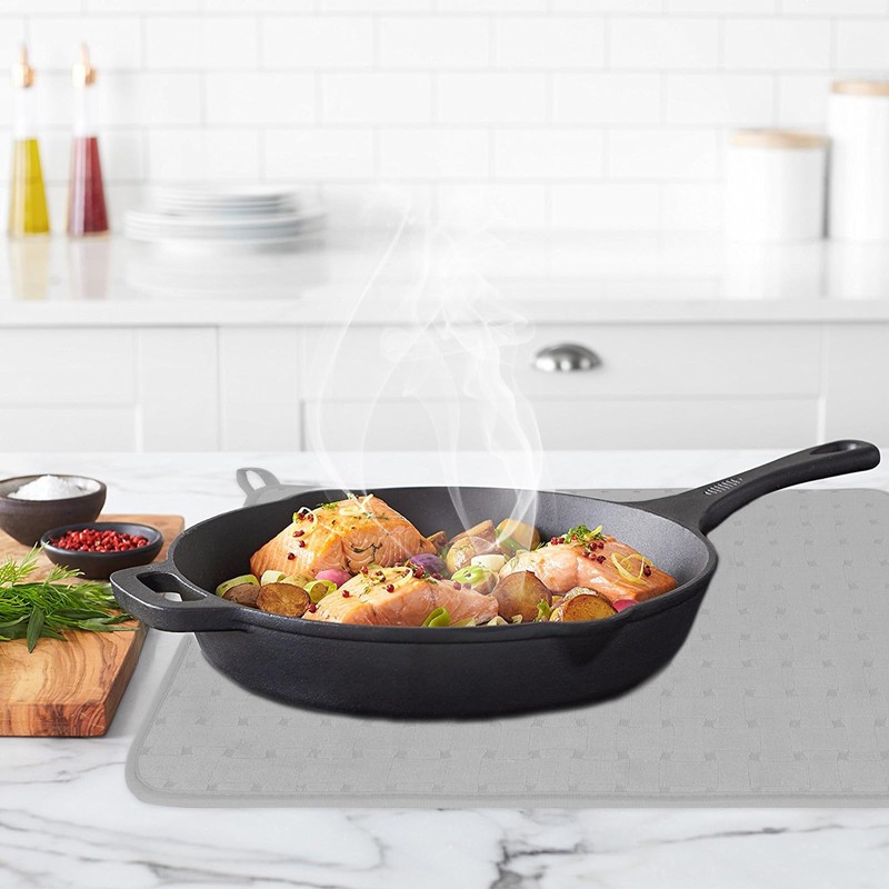 🥧🧆Made from high-quality microfiber, these mats offer superior absorbency compared to traditional dish drying mats. The microfiber material not only absorbs water efficiently but also dries quickly, preventing any moisture build-up or unpleasant odors. This makes the mats hygienic and perfect for everyday use.