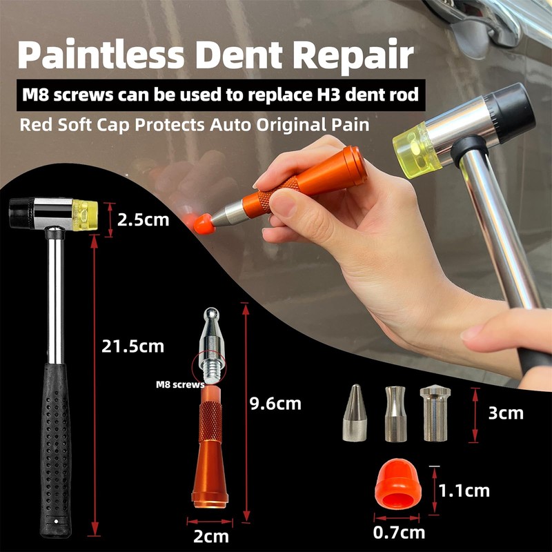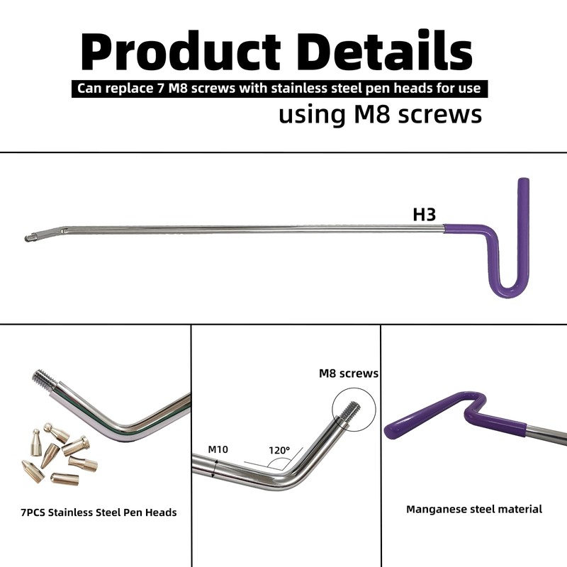 - 【Replaceable Rod Head】H3 rod is replaceable rod head with 4 stainless steel rod heads that can be replaced. Rod heads of different shapes can be used for all types of dent repair.