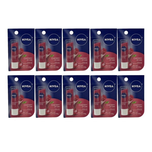 10 Pack Nivea Cherry Lip Care Tinted Scented Shea 0.17 oz Moisturize Hydrate