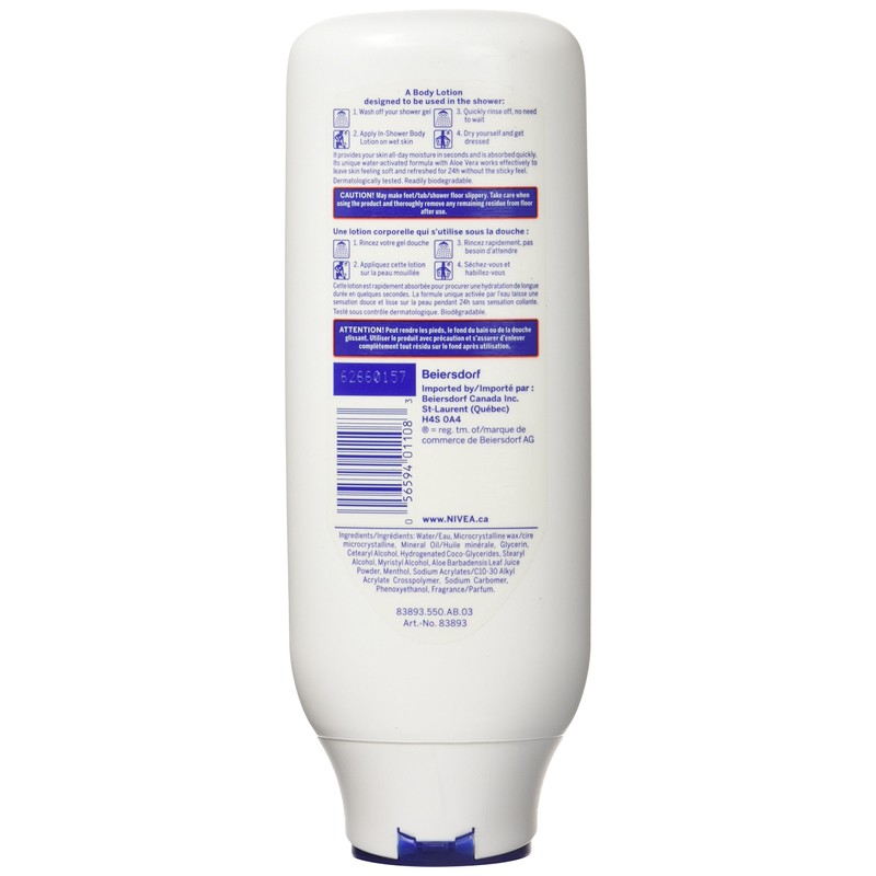 NIVEA 24H Fresh Aloe In-Shower Body Lotion for Normal to Dry SKin, 400 mL