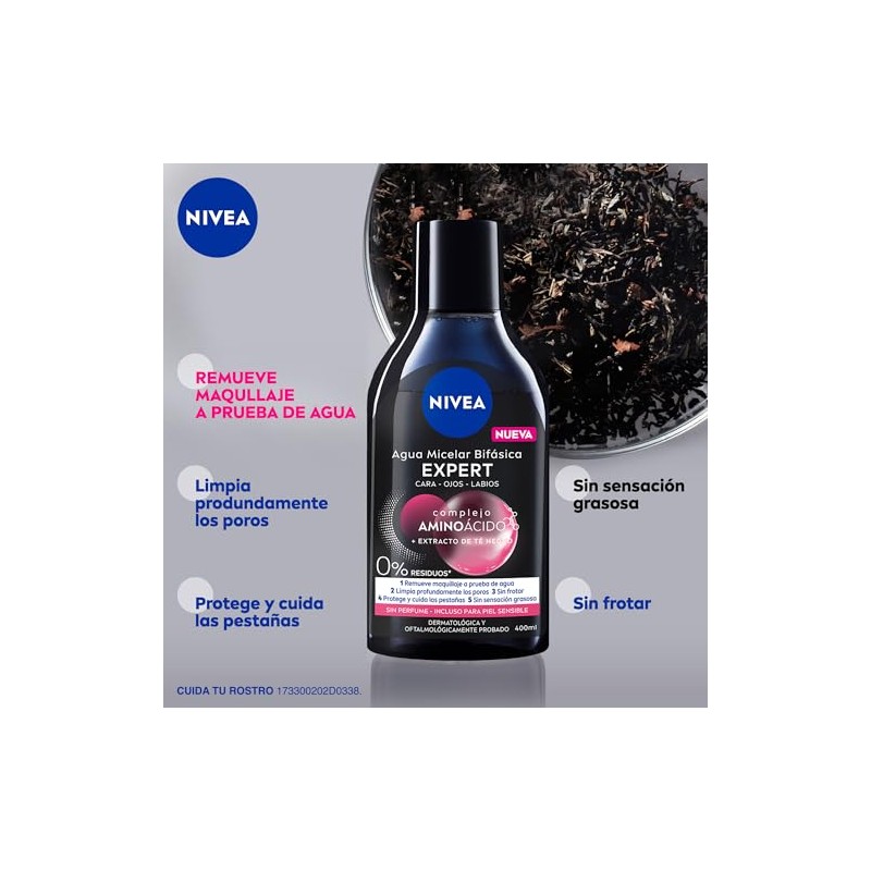 NIVEA - NIVEA Agua Micelar Desmaquillante Efecto Mate (400 ml) - Fórmula Vegana con Complejo Aminoácido, Remueve Maquillaje a Prueba de Agua, Limpia y Refresca la Piel - Ideal para Piel Sensible, Mixta y Grasa