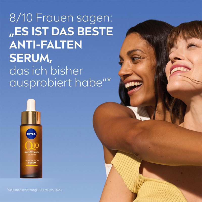 - Lieferumfang & Details – NIVEA Q10 Anti-Falten Experte Dual Action Serum, 30 ml, Hautpflege Serum mit innovativem Glycostop, mildert Falten und beugt deren Neuentstehung vor, Artikelnr. 98716