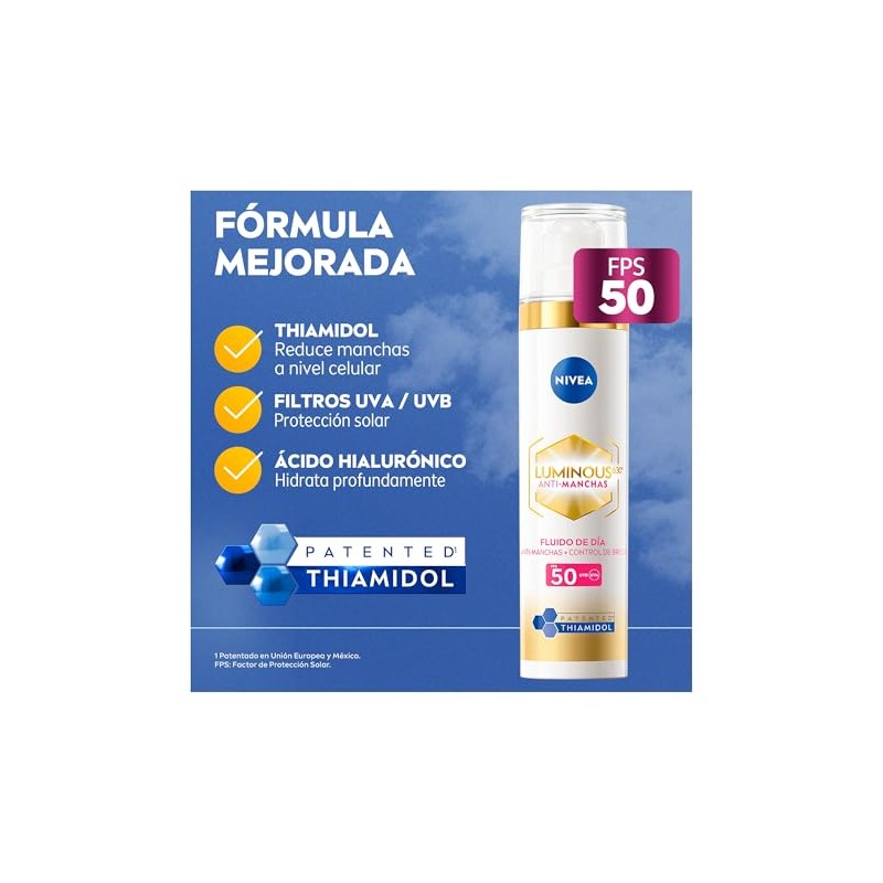 NIVEA - NIVEA Cellular LUMINOUS630 Anti-manchas Fluido Facial Aclarador de Piel FPS50 (40 ml), Enriquecido Con Ácido Hialurónico y Vitamina E para una Piel Luminosa sin manchas por Edad, Solares ni Hormonales. ⭐ Calidad premium certificada con excelentes reseñas. Materiales de alta gama y acabados premium. 💎 Calidad superior certificada. Ideal para quienes buscan lo mejor en calidad y estilo. Producto auténtico con satisfacción total asegurada. ¡No te quedes sin el tuyo y aprovecha esta oportunidad única!